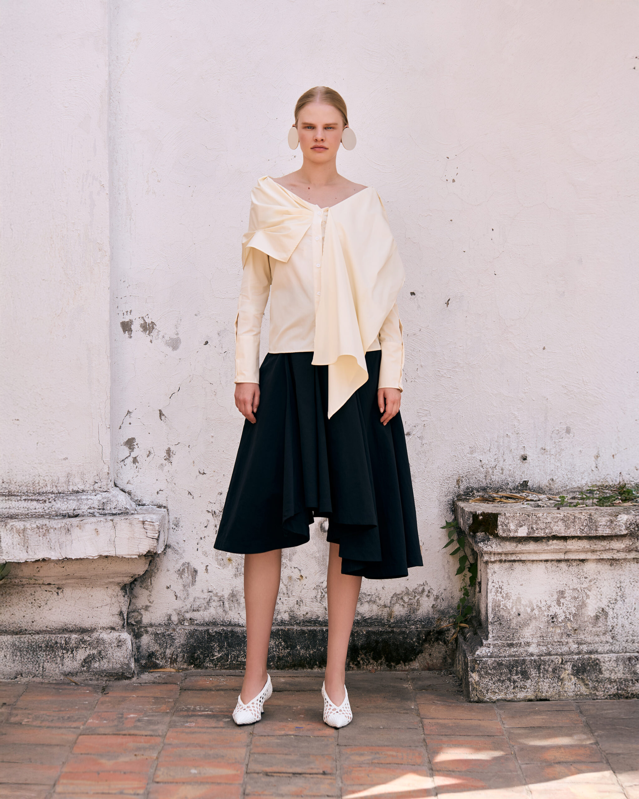 Abel López se ha identificado por exhibir siluetas elegantes, con un diseño femenino y sofisticado; prendas contemporáneas, de trazos y líneas definidas, que logran una estética ligeramente futurista. Sus cinturas explosivas atenuadas por el juego de contrastes y texturas orgánicas, reflejan la sobriedad de una pieza arquitectónica, que resalta la feminidad de cada mujer.